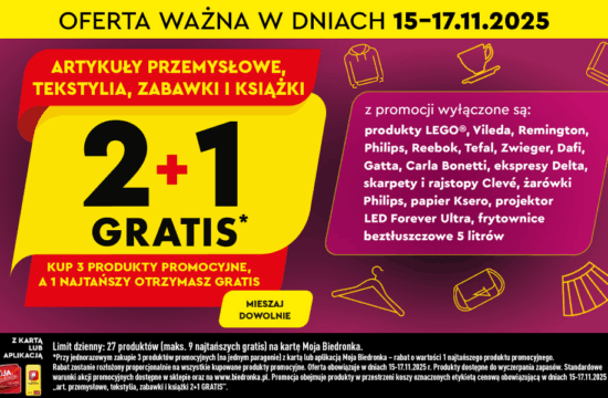 Promocja na książki w Biedronce: 2+1. Kupujemy 3 książki i jedną z nich (najtańszą) dostajemy gratis. * Rodzaj promocji: 2+1 gratis Czas trwania: do 17.11.2025 r. Skorzystaj z promocji ~~ wpis zawiera linki partnerskie (afiliacyjne)…