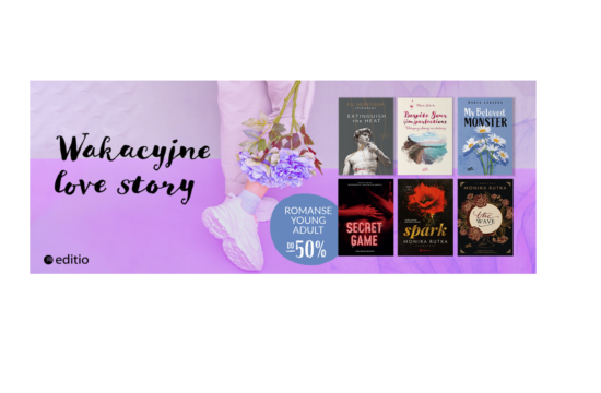 W Editio trwa promocja na romanse Young Adult. Rabaty do 50%. W promocji blisko 40 tytułów. *Rodzaj promocji: rabaty do 50%Czas trwania: do 14.08.2023 r.Skorzystaj z promocji