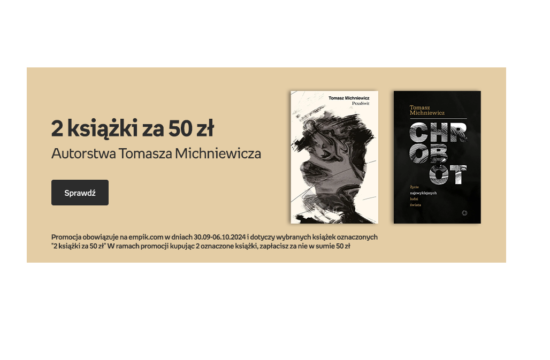 Tomasz Michniewicz - jego 2 książki kupimy za 50 zł na Empik.com. *Rodzaj promocji: 2 książki za 50 złCzas trwania: do 6.10.2024 r. / do wyczerpania zapasówSkorzystaj z promocji