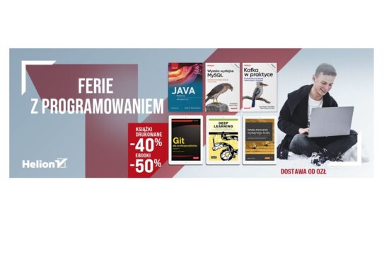 Ferie z programowaniem? Czemu nie! W Helionie znajdziemy teraz książki z tym związane o 40% taniej. *Rodzaj promocji: rabaty 40%Czas trwania: do 28.01.2023 r.Skorzystaj z promocji