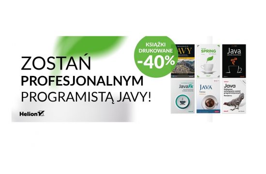 W Helionie króluje obecnie Java - książki kupimy o 40% taniej. W promocji na przykład: *Rodzaj promocji: rabaty 40%Czas trwania: do 30.03.2022 r.Skorzystaj z promocji