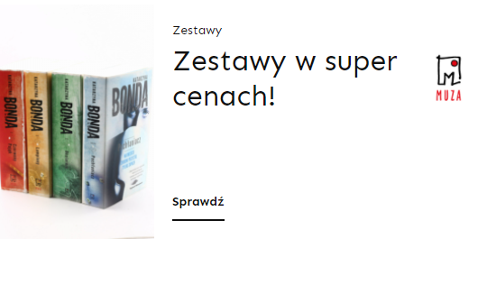 Księgarnia Wydawnictwa Muza podsuwa zestawy książek w dużo niższych cenach. Rabaty do 63%. Między innymi: *Rodzaj promocji: rabaty do 63%Skorzystaj z promocji