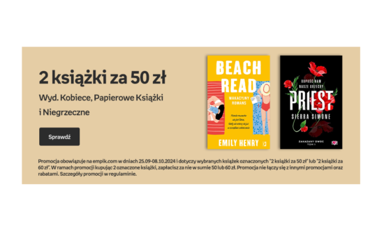 Na Empik.com trwa promocja, w której można zgarnąć 2 książki po 50 zł lub 2 książki 60 zł. Wyd. Kobiece, Papierowe Książki i Niegrzeczne Książki - ich książki objęte są promocją. *Rodzaj promocji: 2 książki…