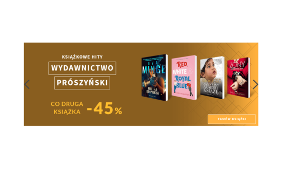 Wydawnictwo Prószyński - co druga książka 45% taniej w Matrasie. Rabat naliczy się na tańszy tytuł. *Rodzaj promocji: rabaty 45%Czas trwania: do 29.01.2023 r.Skorzystaj z promocji