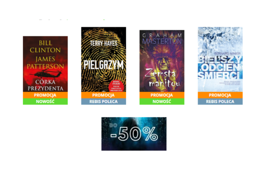 W Rebisie rabaty do 50% na kategorie thriller, kryminał, horror. Między innymi na: *Rodzaj promocji: rabaty do 50%Czas trwania: do 19.09.2022 r.Skorzystaj z promocji