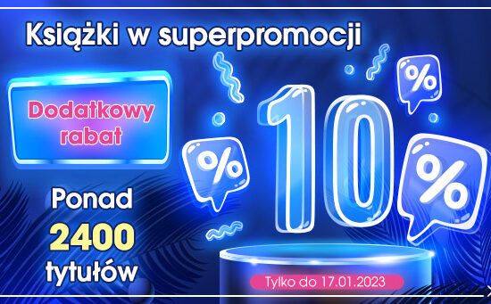 W księgarni Świat Książki obowiązuje dodatkowe 10% rabatu na ponad 2400 tytułów. Na przykład na: Rabat naliczy się w koszyku. *Rodzaj promocji: dodatkowy rabat 10%Czas trwania: do 17.01.2023 r.Skorzystaj z promocji