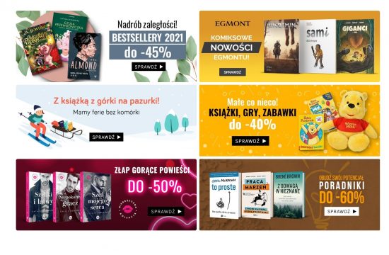 Zestawienie kilku promocji z księgarni Tania Książka. Bestsellery 2021 roku z rabatami do 45%. *Rodzaj promocji: rabaty do 45%Czas trwania: do 24.01.2022 r.Skorzystaj z promocji Niegrzeczne Książki z rabatami do 50%. *Rodzaj promocji: rabaty do…