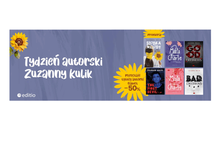 Editio01/12/2025 Editio: Zuzanna Kulik – książki do -40% W Editio trwa tydzień autorski Zuzanny Kulik i z tej okazji jej książki kupimy do 40% taniej. W promocji między innymi: * Rodzaj promocji: rabaty do 40% Czas trwania: do 2.12.2025 r. Skorzystaj z promocji ~~ wpis zawiera linki partnerskie (afiliacyjne) 🙂
