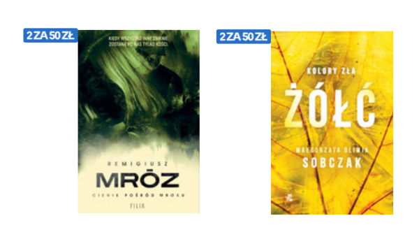 Na Empik.com możemy stworzyć sobie książki w pakietach – 2 książki za 50 zł, a także 2 za 30 zł, 2 za 40 zł, 2 za 60 zł lub 2 za 70 zł.