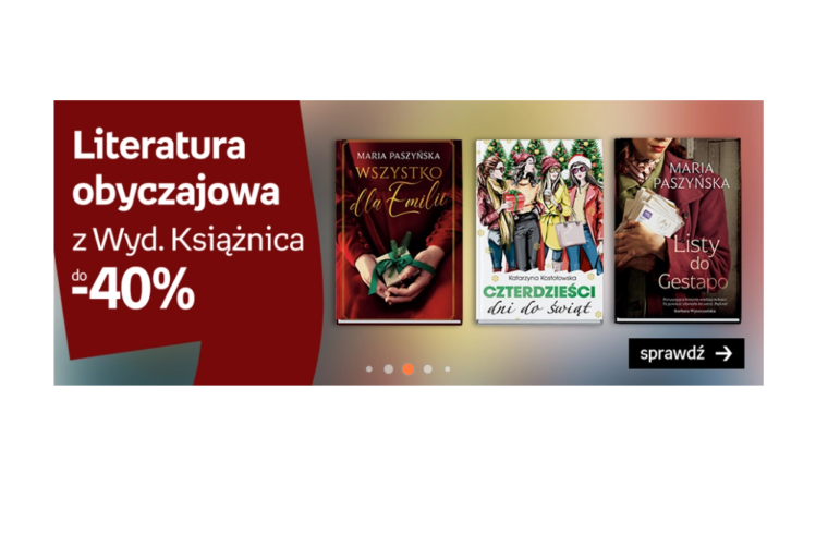Empik27/11/2022 Empik: rabaty do 40% na książki Wydawnictwa Książnica Na Empik.com obowiązują rabaty do 40% na książki Wydawnictwa Książnica. W promocji blisko 60 tytułów. *Rodzaj promocji: rabaty do 40%Czas trwania: do 29.11.2022 r. / do wyczerpania zapasów promocyjnychSkorzystaj z promocji