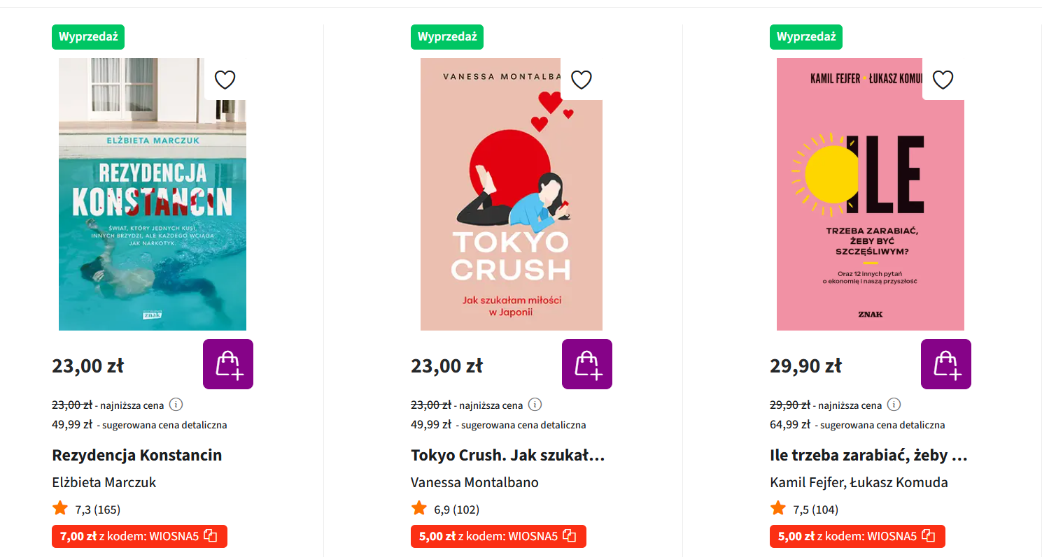 Matras24/04/2026 Matras: wiosenna wyprzedaż – książki od 5 zł W Matrasie trwa wiosenna wyprzedaż – książki już od 5 zł. Z kodem WIOSNA5 W promocji na przykład: * Rodzaj promocji: rabaty Kod rabatowy: WIOSNA5 Czas trwania: do 6.05.2026 r. Skorzystaj z promocji ~~ wpis zawiera linki partnerskie (afiliacyjne) 🙂