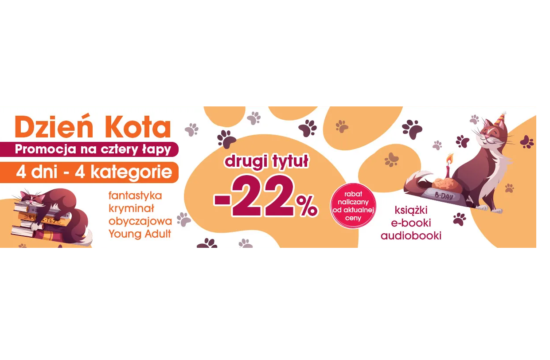Księgarnia Świat Książki świętuje Dzień Kota i przygotowała promocję na cztery łapy, która obowiązuje na cztery kategorie książek - fantastyka, kryminał, literatura obyczajowa, young adult. Co druga książka o 22% taniej (rabat naliczy się na…