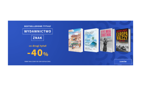 W księgarni Znak więcej za mniej - co druga książka 50% taniej. *Rodzaj promocji: rabaty 50%Czas trwania: do 26.05.2024 r.Skorzystaj z promocji