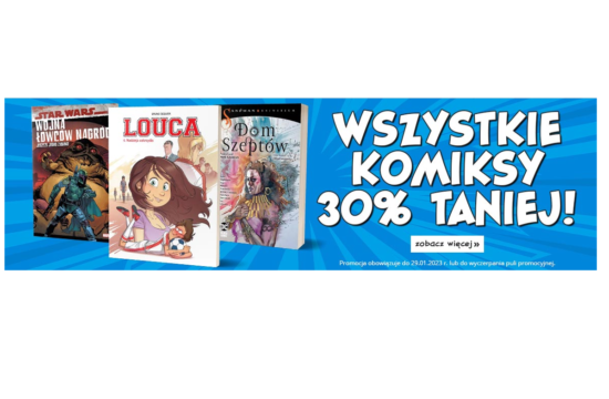 Wszystkie komiksy 30% taniej w księgarni Egmont! Między innymi: *Rodzaj promocji: rabaty 30%Czas trwania: do 29.01.2023 r. / do wyczerpania zapasów promocyjnychSkorzystaj z promocji