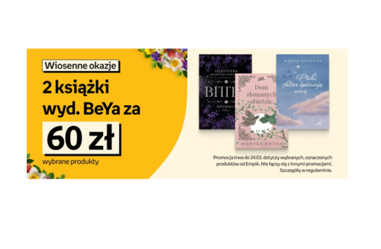 2 książki BeYa za 60 zł na Empik.com. * Rodzaj promocji: 2 książki za 60 zł Czas trwania: do 24.03.2026 r. / do wyczerpania zapasów Skorzystaj z promocji ~~ wpis zawiera linki partnerskie (afiliacyjne) :)
