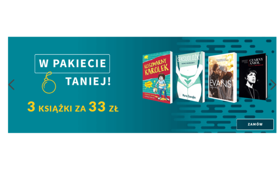 W Matrasie znajdziemy promocję pakietową - 3 książki za 33 zł. Wybierać można z różnych tytułów, przykładowy zestaw: *Rodzaj promocji: 3 za 33 złCzas trwania: do 18.12.2022 r.Skorzystaj z promocji