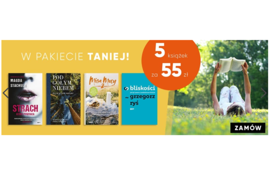 W Znaku czeka na Książkoholików promocja, w której można wrzucić do koszyka 5 książek za 55 zł. Na przykład taki pakiet: *Rodzaj promocji: 5 za 55 złCzas trwania: do 14.06.2022 r.Skorzystaj z promocji