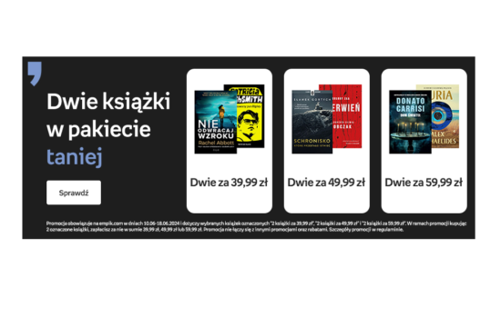 Na Empik.com możemy wybrać teraz 2 książki w pakiecie taniej. W zależności od wybranych tytułów będą to 2 książki za 39,99 zł lub 49,99 zł lub 59,99 zł. W promocji ponad 1000 tytułów, więc jest w czym…