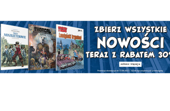 Komiksowe nowości z księgarni Egmont teraz z rabatami 30%. Na przykład: *Rodzaj promocji: rabaty 30%Czas trwania: do 25.09.2022 r.Skorzystaj z promocji