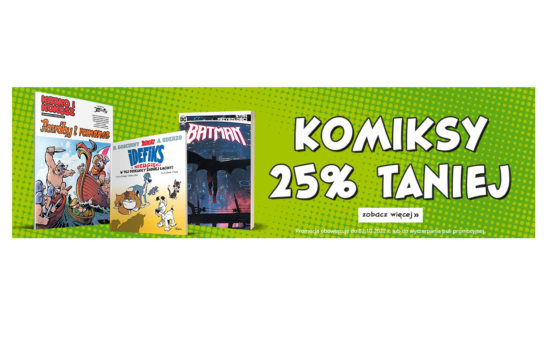 W księgarni Egmont trwa jeszcze dziś promocja na komiksy. Rabaty 25%. Wśród tytułów na przykład: *Rodzaj promocji: rabaty 25%Czas trwania: do 2.10.2022 r.Skorzystaj z promocji
