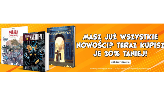 W księgarni Egmont trwa promocja na komiksy. Kupimy je teraz 30% taniej. W promocji na przykład: *Rodzaj promocji: rabaty 30%Czas trwania: do 16.10.2022 r.Skorzystaj z promocji