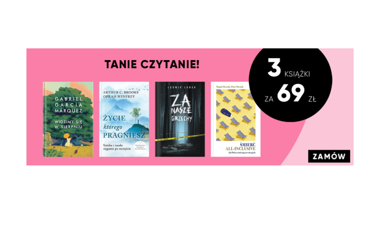 Znak27/07/2024 Znak: 3 książki za 69 zł – tanie czytanie Tanie czytanie w księgarni Znak, czyli nowa promocja 🙂 3 książki za 69 zł. Sami możemy stworzyć swój pakiet z promocyjnej puli książek. *Rodzaj promocji: 3 książki za 69 złCzas trwania: do 5.08.2024 r.Skorzystaj z promocji